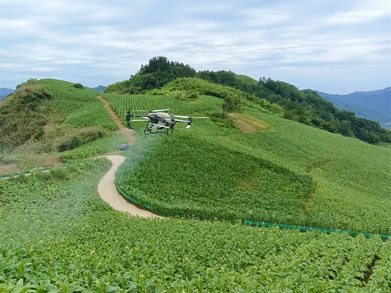 “旱情一来,烟站的领导干部就第一时间带着技术团队下了田,帮助我们‘干墒覆膜’‘破井围兜’。” 他不仅按照要求高标准完成了这些传统抗旱作业,更灵活运用新装备——将植保无人机投入抗旱,瞅准时机为烟叶进行喷水补湿与降温。这套“土办法”与“新装备”的组合拳,让他的烟田在普遍的旱情中,成了长势最好、受损最轻的“标杆田”。