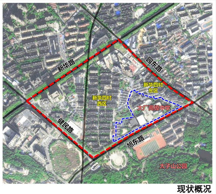 其中,核心修改地块面积约3.51公顷,东至新华四村东区,西至新华四村西区,南至规划绿地,正是大厂高级中学的所在地。该地块现状以高中用地和广场用地为主,是片区教育与居民休闲的重要承载空间。